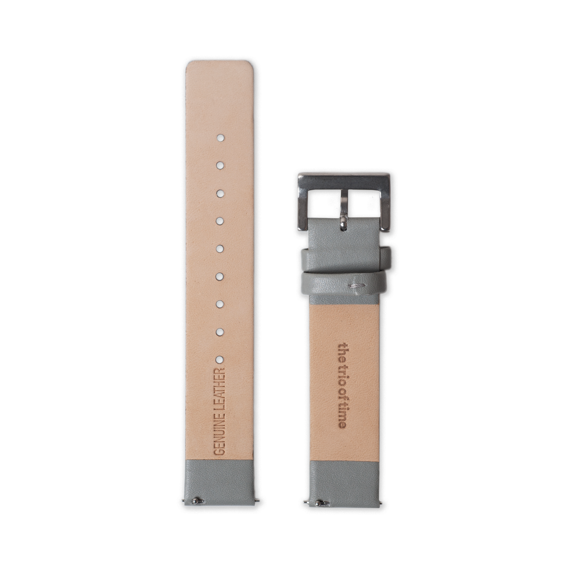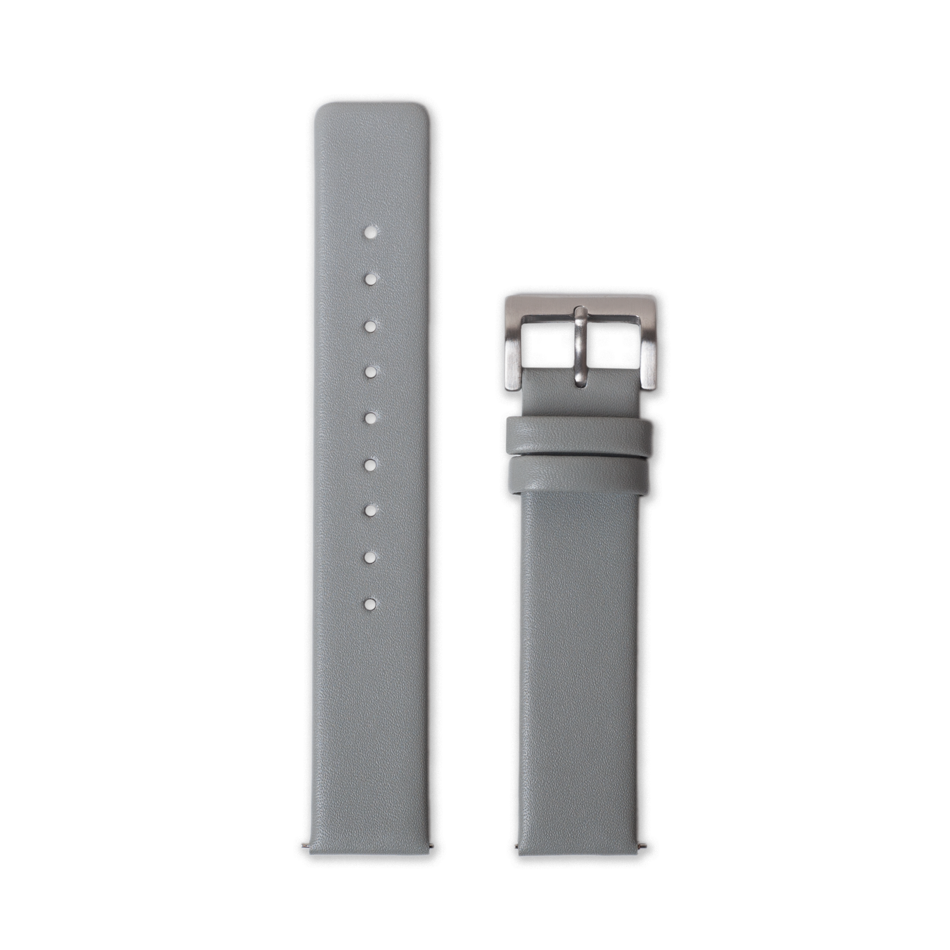 Premium genuine leather, hand selected, 18mm width, with straight, wrapped construction paired with a stainless steel 18mm buckle.