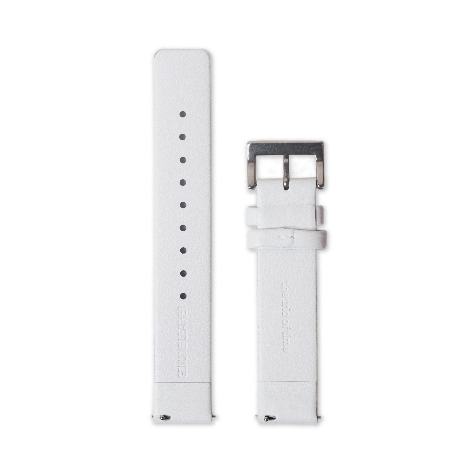 Premium genuine leather, hand selected, 18mm width, with straight, wrapped construction paired with a stainless steel 18mm buckle.