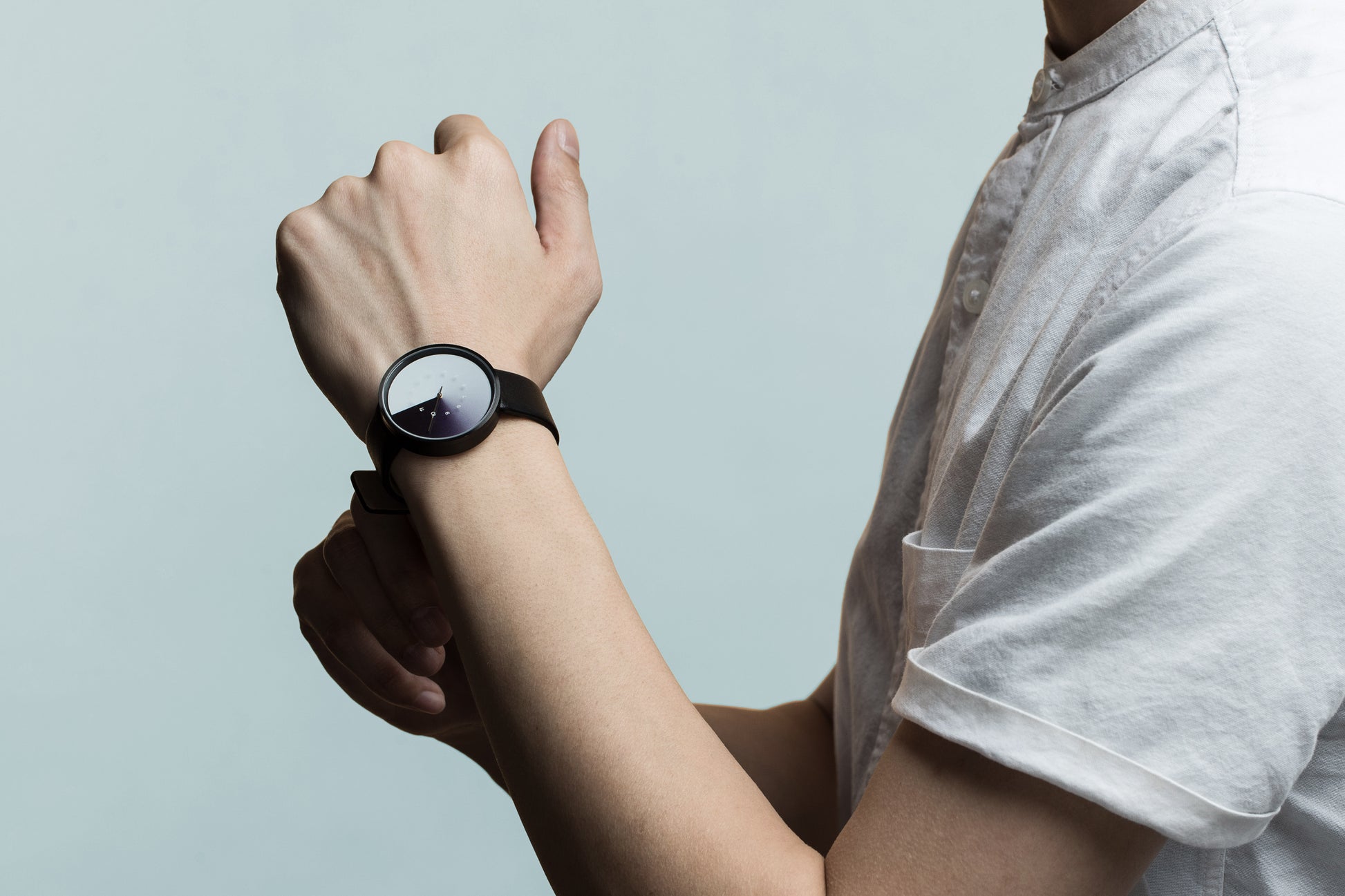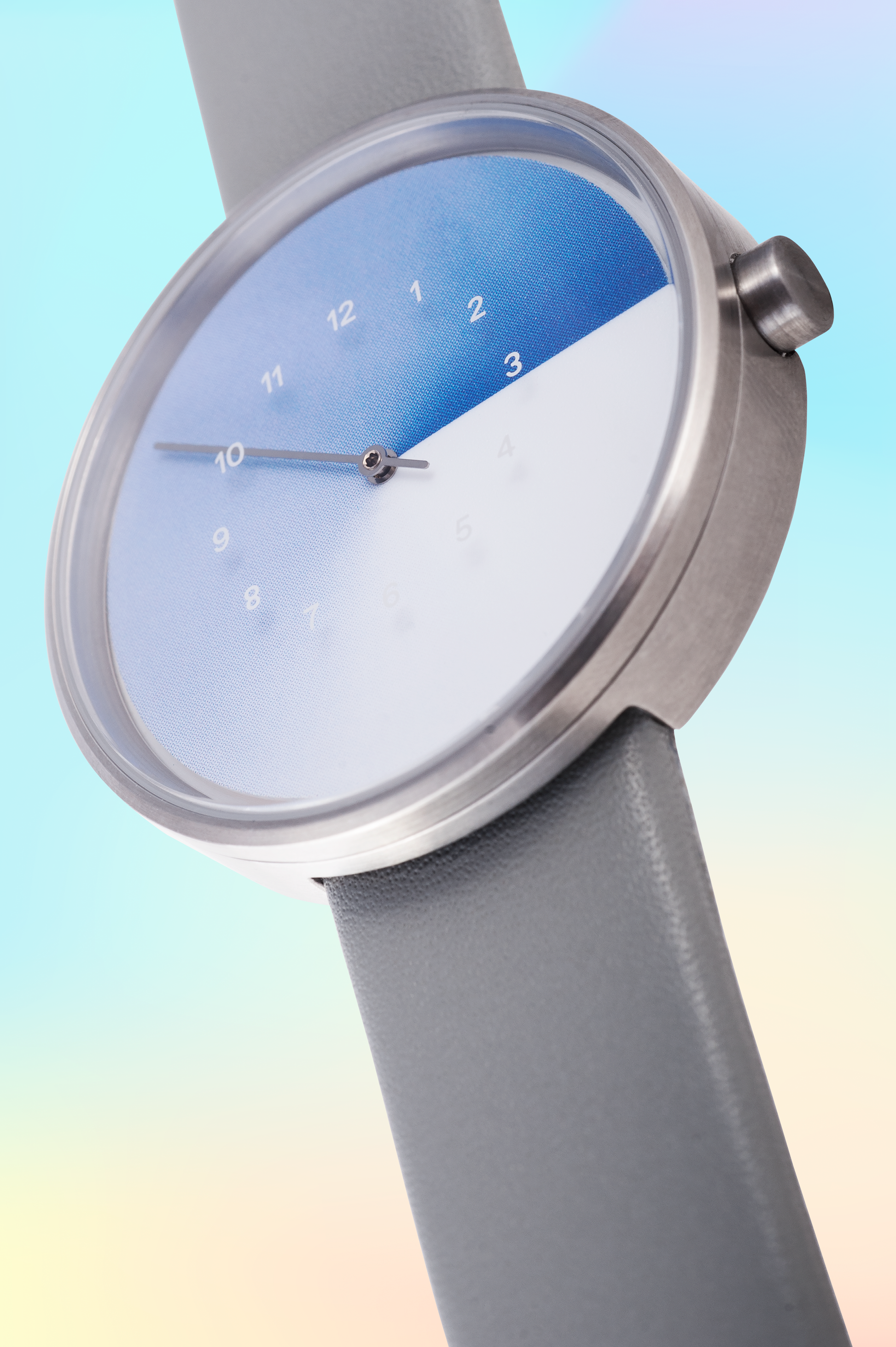 The watch uses an optical illusion to trick you into focusing on the present, it helps you focus on time in the moment, using a modern interpretation of the camouflage effect to hide the passing hours.